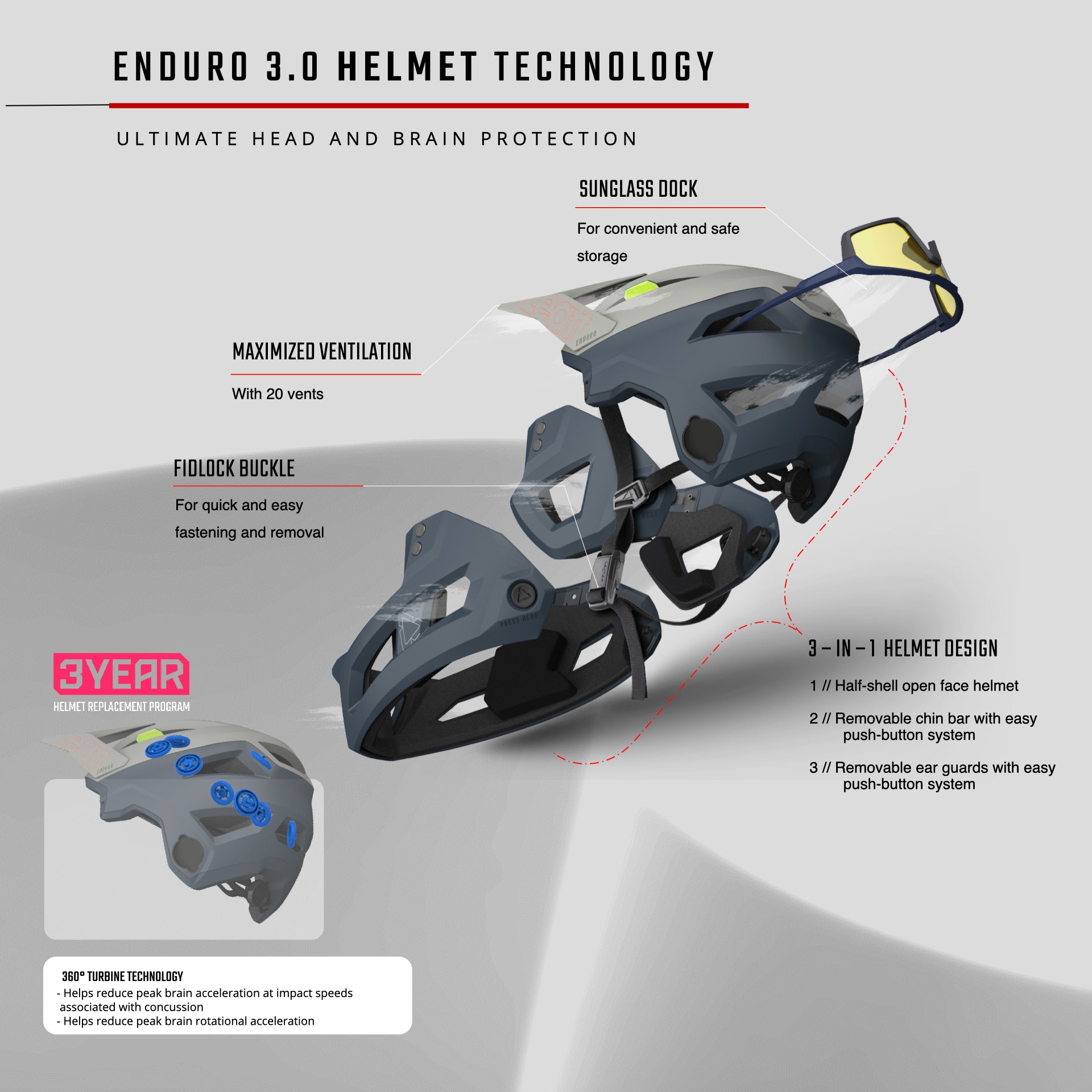 - 3-IN-1 helmet design: