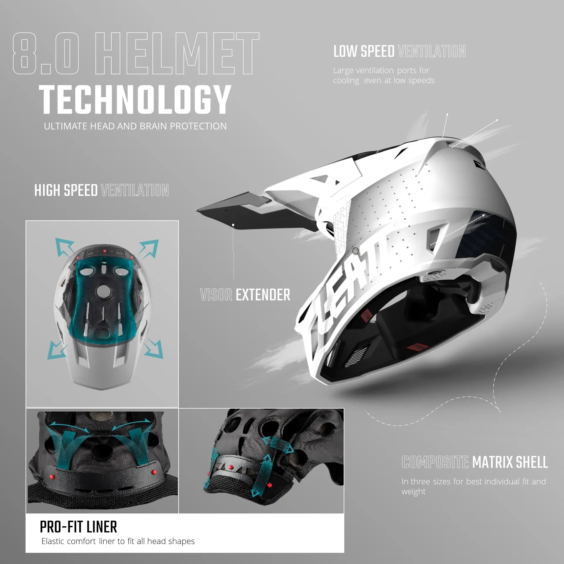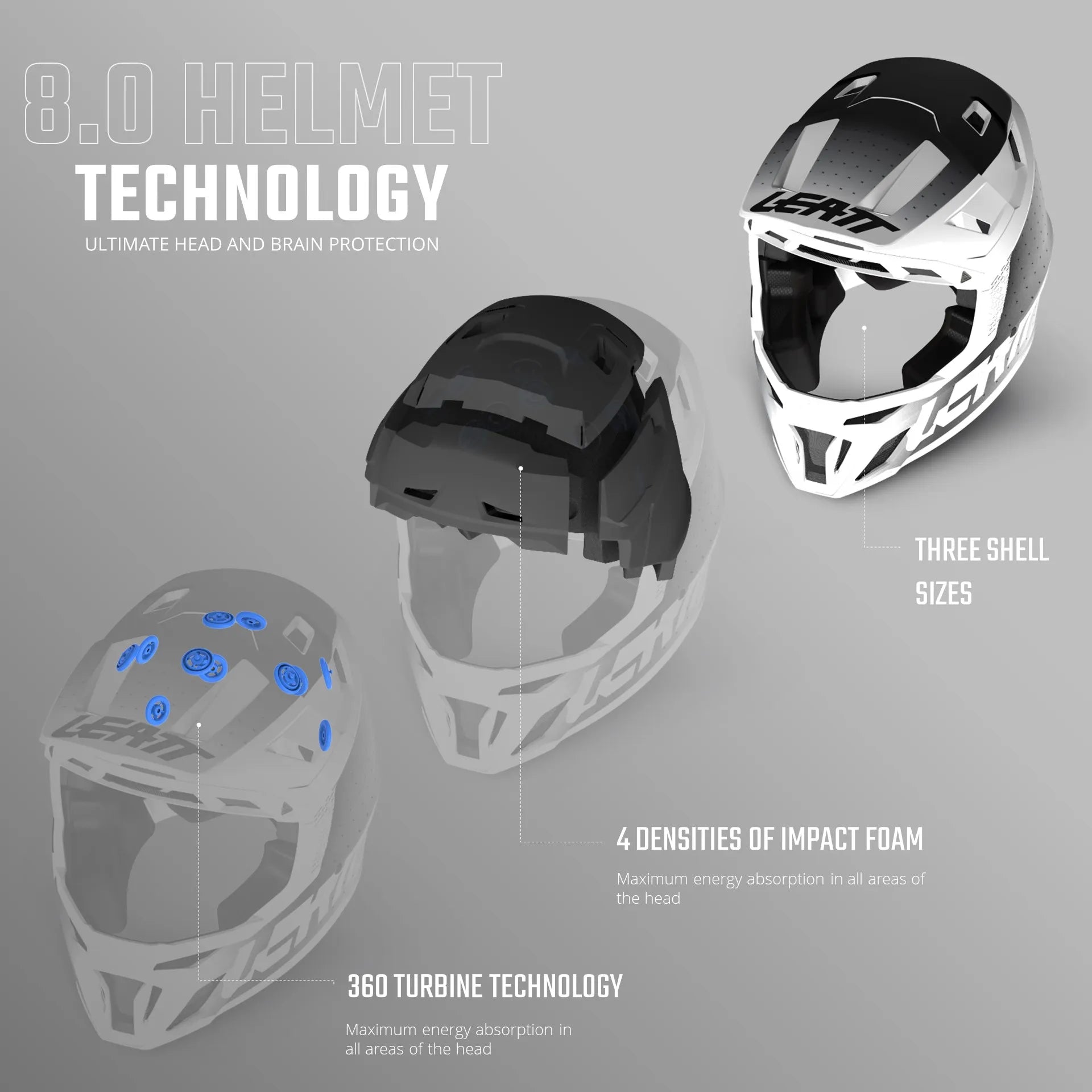 We all crash. Why take chances when choosing a new helmet? The Gravity 8.0 offers leading protection, comfort and style all at a remarkably easy-to-wear-all-day weight. All Leatt helmets feature 360 ̊ Turbine Technology. This system reduces both rotation acceleration and concussion level impact energy to your head and brain, so you can be more confident to push your limits.
