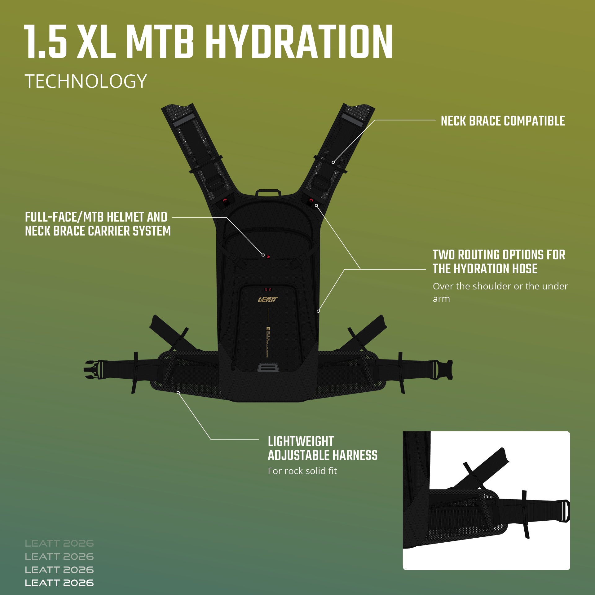 The backpack includes a 1.5L bladder and with Hydrapak bite valve, there is also a magnetic catcher that comes with the feed tube, so it stays in place. There is also an Airline back design for great ventilation and ready to welcome an additional CE certified impact protector.