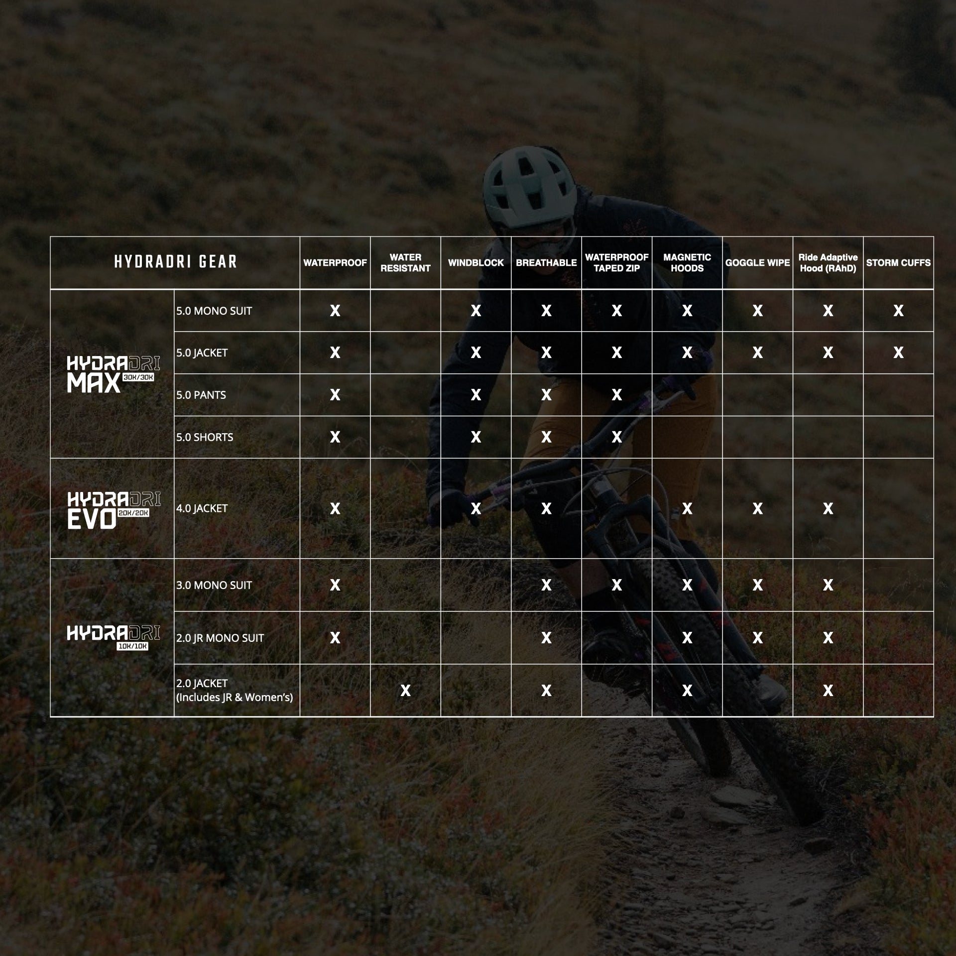 - HydraDri 10.000mm waterproof 10.000g/m² breathable shell