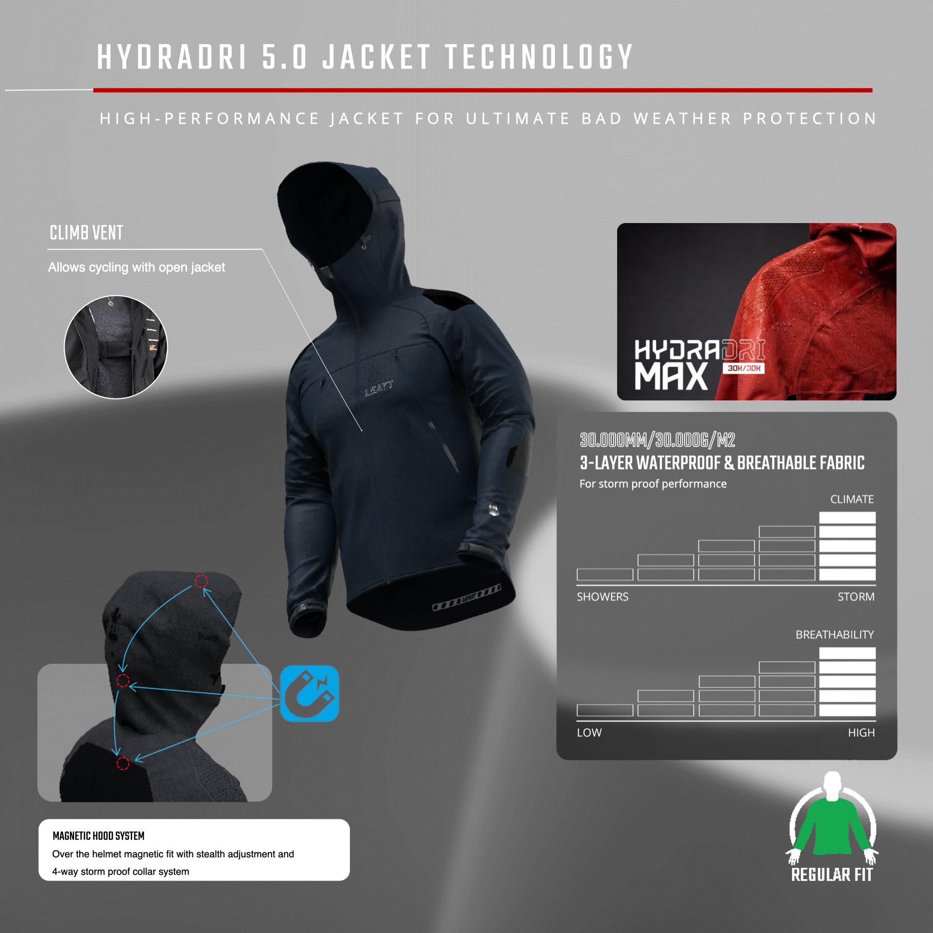 Made from Leatts ultimate three-layer Hydradri MAX membrane, waterproof and breathable 30.000/30.000 material with adjustable ventilation and a dirt/water/stain resistant coating, it will take on any weather conditions you might face.