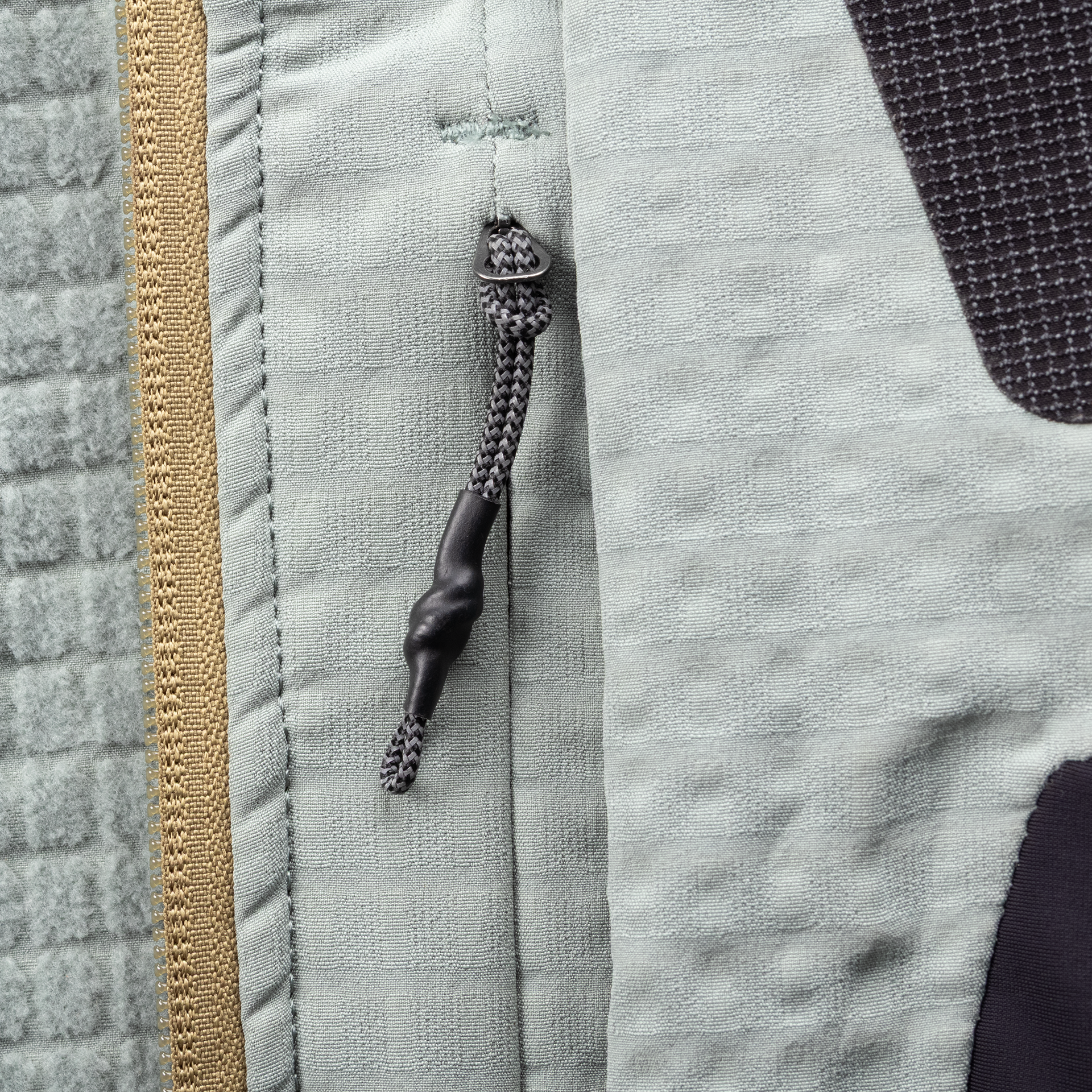 The ThermaFlow 5.0 Jacket blocks cold wind and keeps you warm, while letting your body breathe—perfect for high-output rides in chilly conditions. Its custom-developed double weave fabric combines a windproof, water-resistant outer shell with a ventilated fleece interior made with lightweight, thermally efficient GRAPHENE yarn. Built without a laminate, it maximizes airflow while still sealing out the elements with a PFAS-free dirt- and water-resistant coating, seam-taped construction, and snug elastane cuffs. The Ride Adaptive Hood (RAhD) features a patent-pending magnetic system that keeps it in place—either fixed to your helmet so it won’t blow off at speed, or secured to your back so it won’t flap like a parachute —while the unique ClimbVent connector allows you to ride with the jacket fully unzipped when airflow is needed on long climbs. It works great on its own or as a midlayer under a shell when the weather turns. Made with bluesign® approved fabrics, the ThermaFlow 5.0 jacket is built for the cold when you bring the heat.