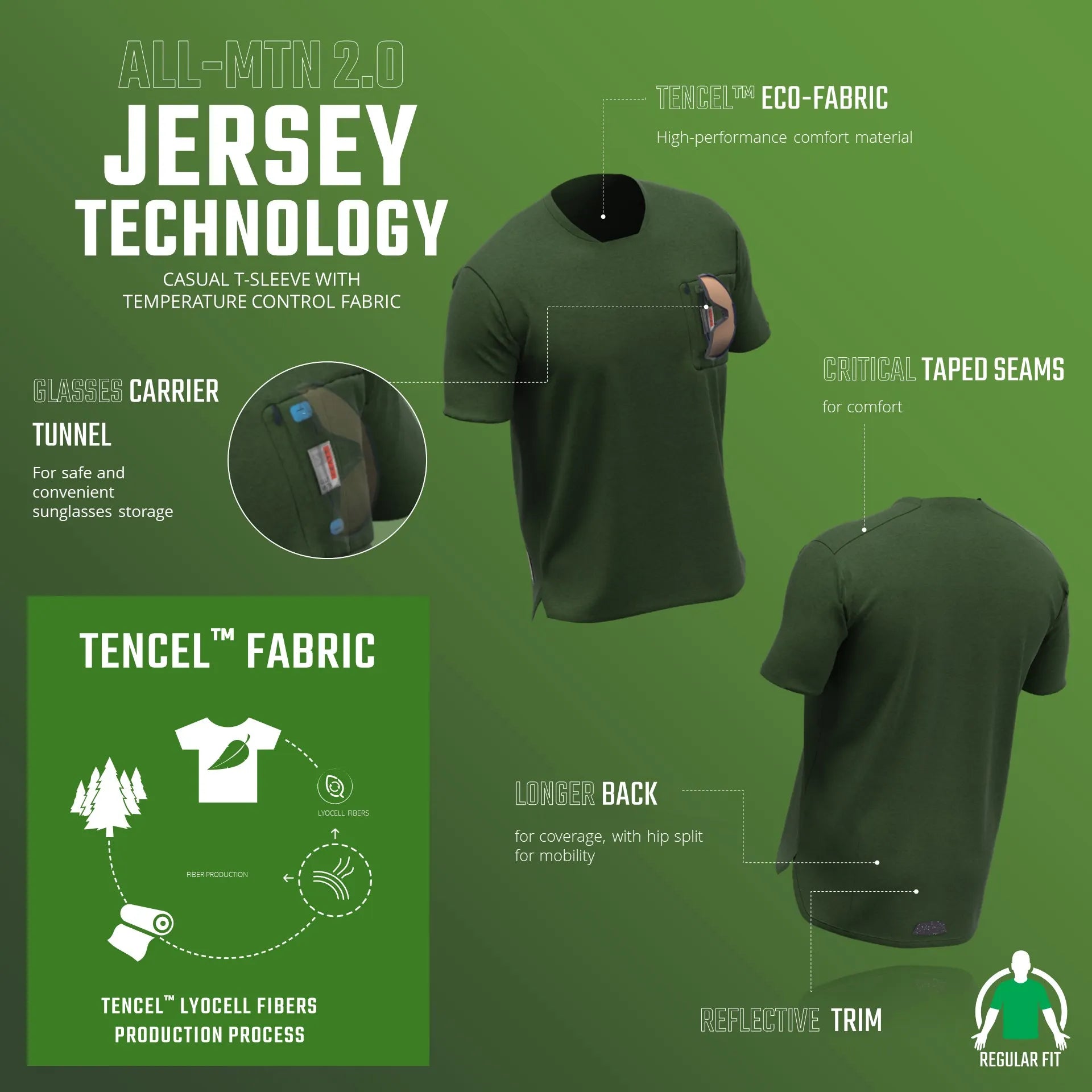 The all mountain 2.0 T-sleeve jersey is made from a cotton-feel material. TENCEL™ is made from utilized tree pulp in Austria, this recycled yarn is a premium technical fabric with great performance qualities. TENCEL™ is effective at keeping controlling body temperature in a variety of climates. It’s soft touch is ideal for sensitive skin and all-day comfort.