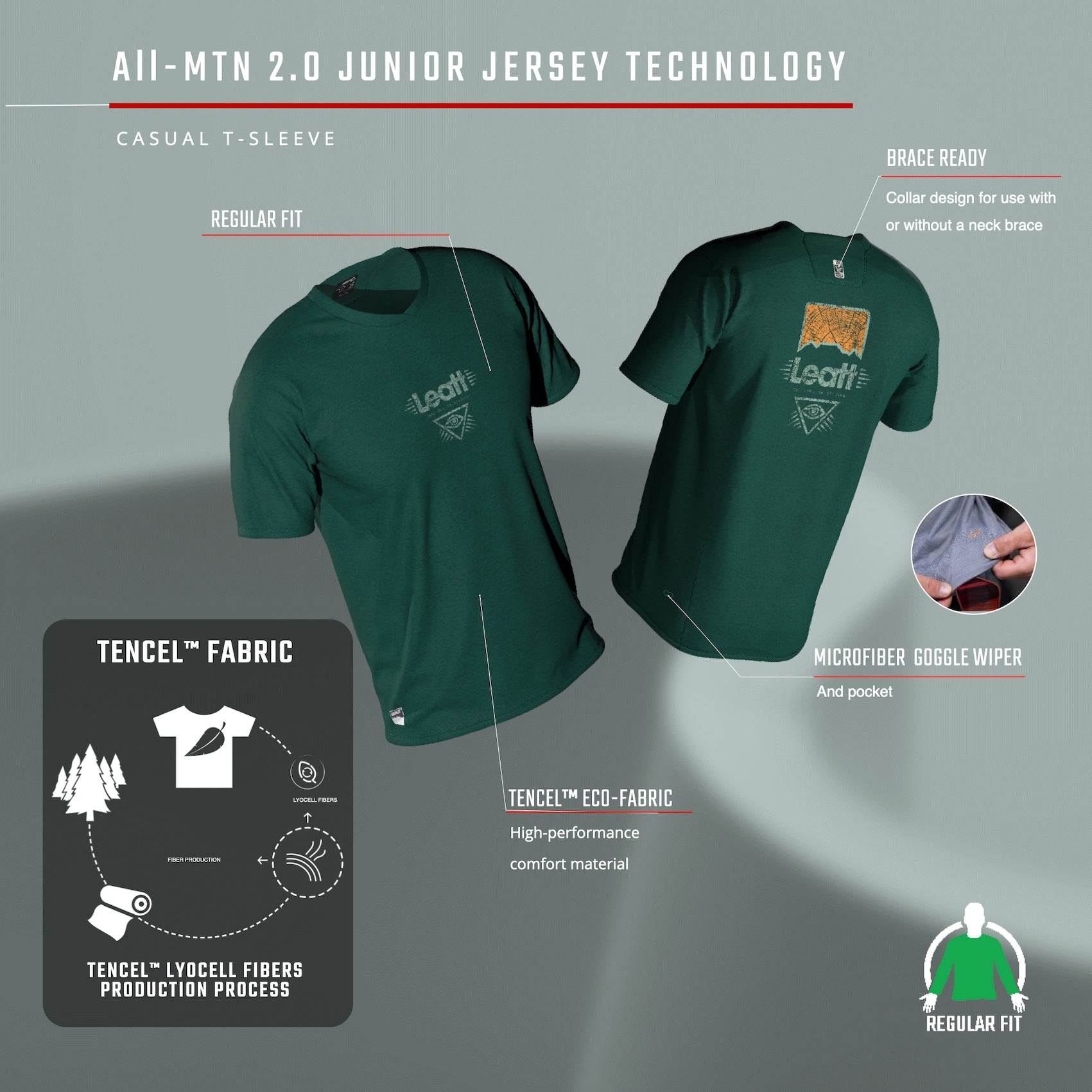Young riders can now enjoy the perfect blend of casual style and high-performance with the Leatt MTB All-MTN 2.0 junior jersey. Tailored for the budding mountain biker, the long-sleeve design is both practical and trendy. The jersey is crafted from an innovative high-performance material derived from tree pulp, offering a soft touch.