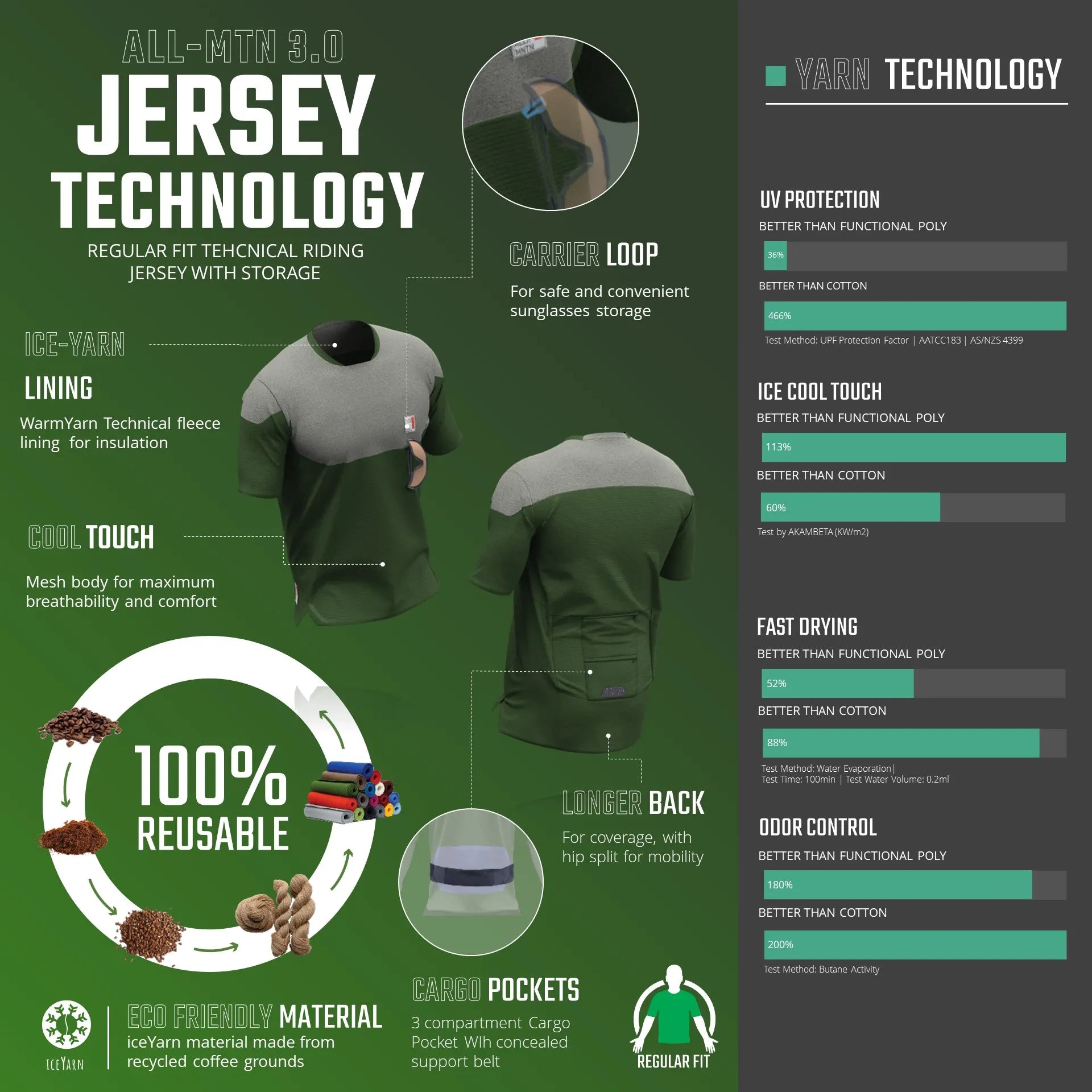 It's not just about the feel; it's about the function. The All-MTN 3.0 jersey features a 2-compartment mesh cargo pocket, fortified with an anti-abrasion, anti-cut design in areas most susceptible to wear and tear. Topped off with stealth reflective trim and UPF 50+ protection, this jersey perfectly balances premium features with essential protection.