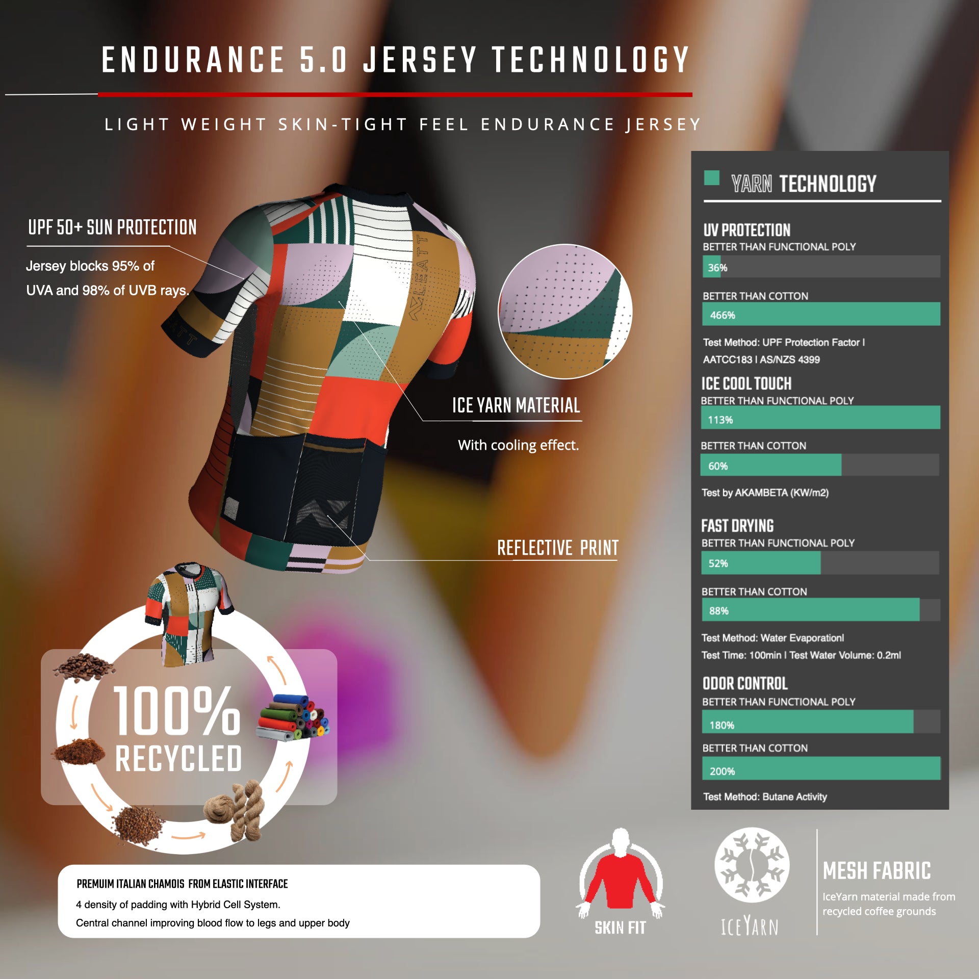 Its unique combination of UPF 50+ sun protection, laser-cut ventilations and super breathable fabric ensures lasting comfort. And the smart arrangement of cargo and zippered pockets adds convenience without sacrificing style. With the Endurance 5.0 jersey, you're not just riding; you're embracing an enhanced riding experience.