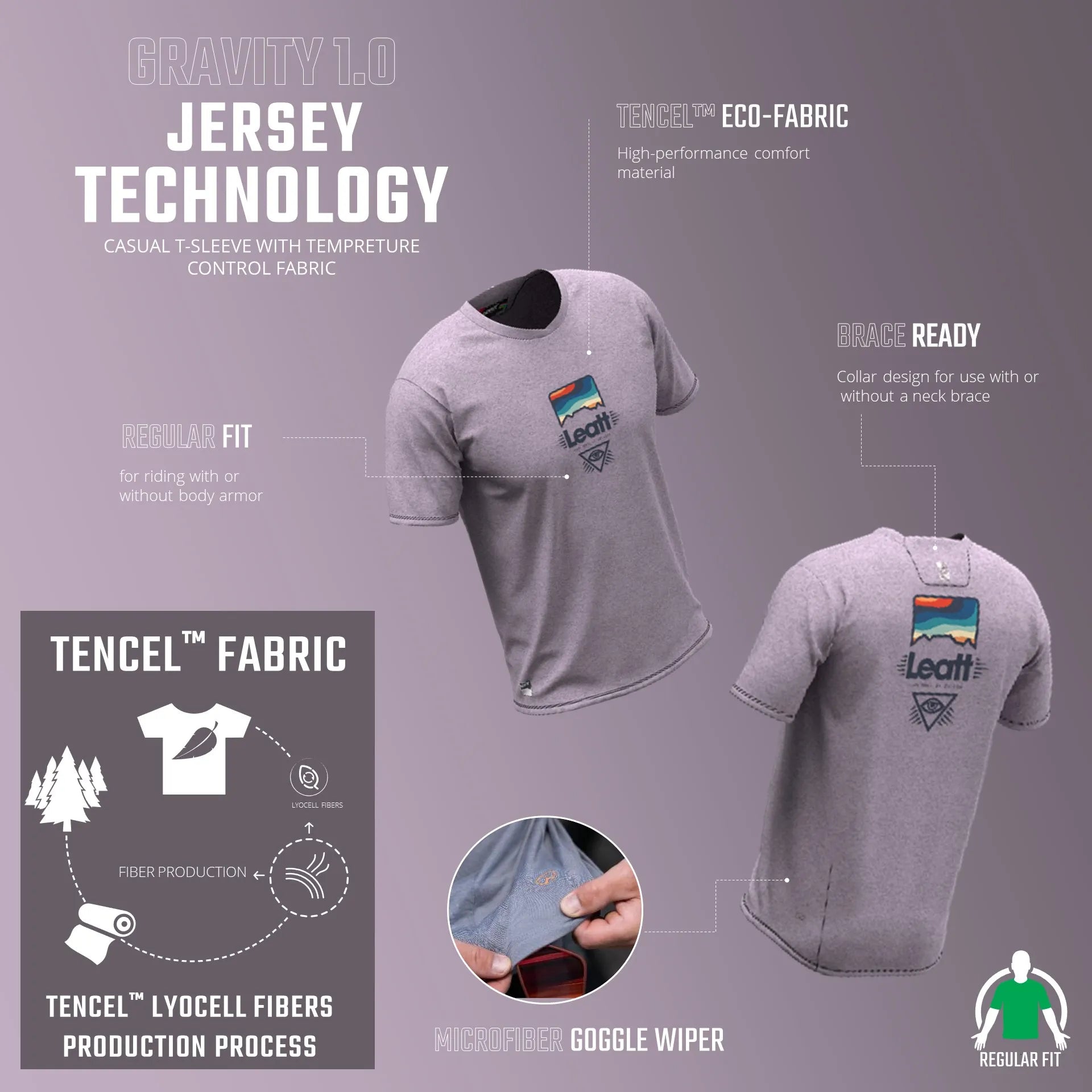 A cool technical bicycle T-shirt. The Gravity 1.0 jersey is made from a cotton-feel material. TENCEL™ is made from utilized tree pulp in Austria, this recycled yarn is a premium technical fabric with great performance qualities. TENCEL™ is effective at keeping controlling body temperature in a variety of climates. It’s soft touch is ideal for sensitive skin and all-day comfort. The stretch fit can be worn with or without body armour and the collar is neck brace ready. As soon as you try it on, you won’t want to take it off!