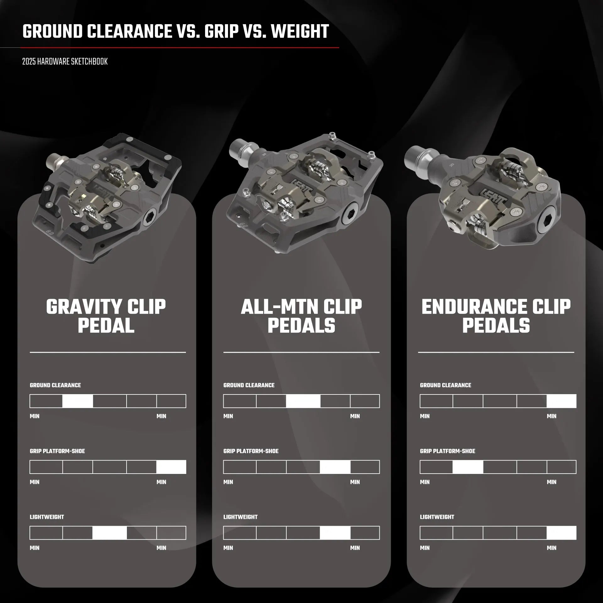 The CNC-machined, ceramic-coated magnesium pedal body (CeraMAG) and Grade-5 titanium axle keeps the weight low at only 298 grams per pair — approximately 190 grams per pedal. The fully serviceable triple-bearings system consists of a LSL self-lubricating bushing, a needle bearing, and an industrial roller bearing. Quad seals keep the internals remain dry in any conditions. The dual-sided clip-in system is compatible with classic SPD cleats. The retention system has an adjustable spring tension to finetune entry and relase, while offering 5 degrees of free float. The pedal is tested and certified to EFBE EPAC XC TRI-TEST® standard (category 3).
